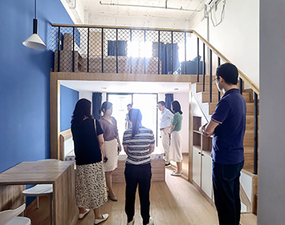 謝華友副局長一行參觀了公寓內(nèi)的休閑娛樂區(qū)、聯(lián)合辦公區(qū)、公寓房間、露天陽臺等功能區(qū),聽取了琥珀租賃及優(yōu)樂公寓基本情況匯報(bào),并詳細(xì)詢問了優(yōu)樂公寓的運(yùn)營管理、系統(tǒng)使用、自有平臺與市租賃平臺對接現(xiàn)狀及新項(xiàng)目的工作進(jìn)展等情況,對優(yōu)樂公寓三孝口店的產(chǎn)品品質(zhì)、運(yùn)營服務(wù)水平表示高度認(rèn)可,同時(shí)對琥珀租賃的發(fā)展提出殷切期望。